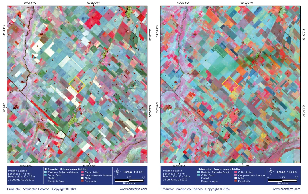 Ambientación agro-satelital de un campo en Argentina